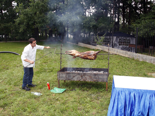 Наша компания, может предложить не только традиционные шашлыки и стейки, но и мясо на вертеле. По Вашему выбору наши повара при гостях зажарят поросенка, молодого ягнёнка или молочного телёнка.